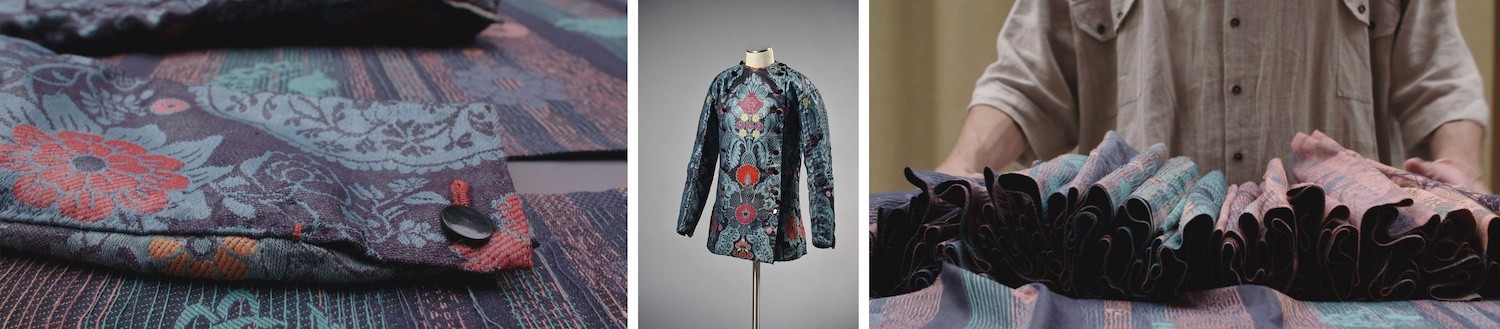 In een breed samenwerkingsverband met een indrukwekkend aantal wetenschappers en vormgevers, onderzoekt het Zeeuws Museum de herkomst én toekomst van 18de en 19de eeuws gebrocheerde damast. Het textiel is vol toewijding in Norwich (GB) geweven, daarna door ondermeer de Zeeuwse man met liefde gedragen. Een laatste brandende vraag die nu gesteld wordt, betreft de diversiteit aan kleur: welke verf- en beitsstoffen en nabehandelingen liggen ten grondslag aan dit glanzende, kleurrijke damast? Is groen wel groen of toch ooit blauw? Voor welke keuzes staan we als stof en jas opnieuw geproduceerd worden?