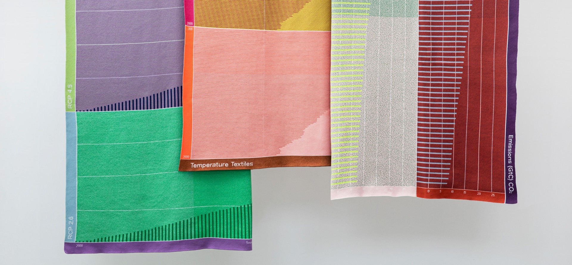 Klimaatverandering communiceren via textiel; Temperature Textiles zijn gebreide dekens, sjaals en sokken, ontworpen om klimaatgegevens te dragen en erover te informaren.