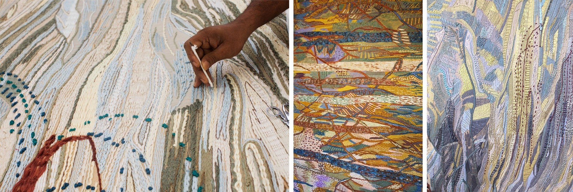 Voor de productie van het wandtapijt van 350 vierkante meter borduurwerk kreeg Jospin hulp van ambachtslieden van de Chanakya School of Craft in Mumbai.