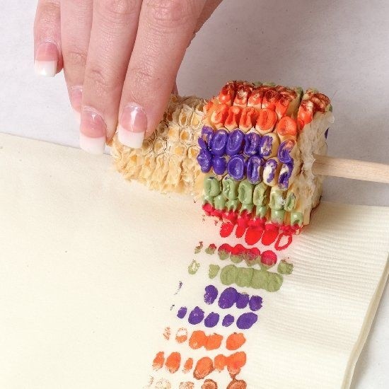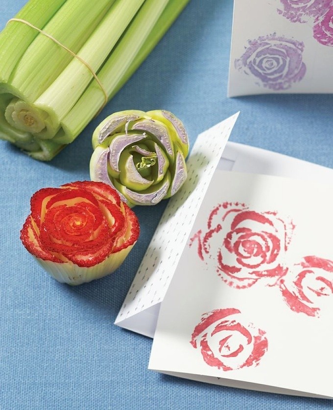 We weten het: twee ons groente, twee stuks fruit; weggooien is zonde. Maar joh, wat kun je fantastisch stempelen met groente en fruit!
