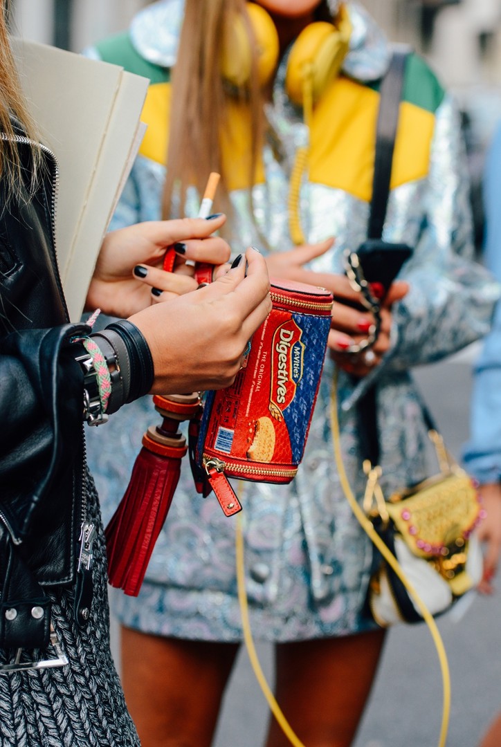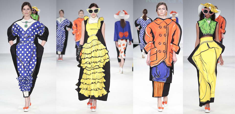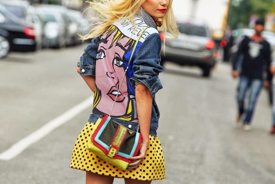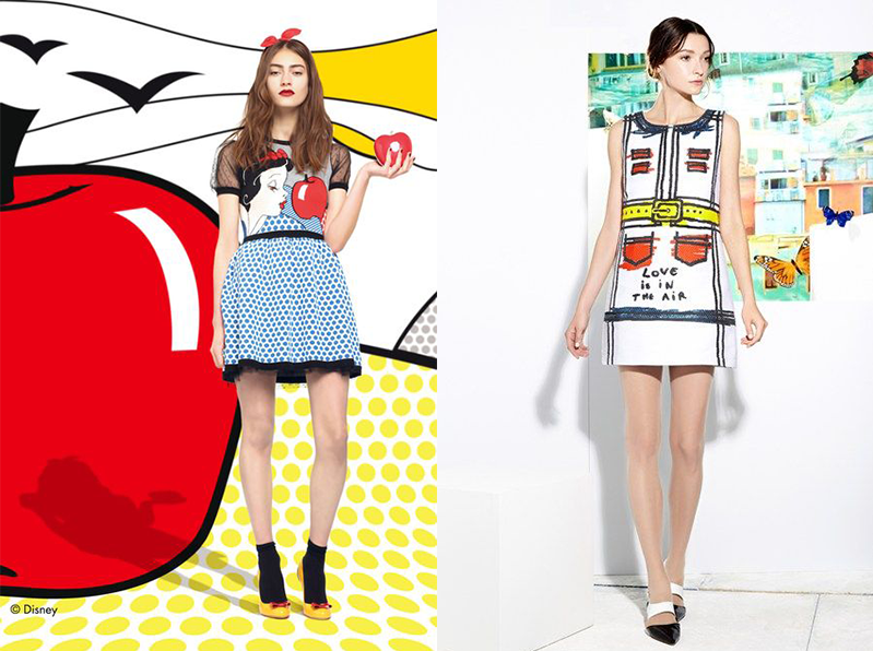 Blouses, jurkjes, jassen en accessoires met hartjes, lippen, fruit, cartoon characters en supermarktproducten... Popart is back - in your face!
