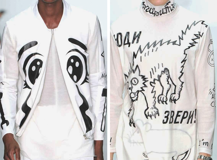 Het is niet de eerste keer dat Raf Simons kunst in zijn collecties verwerkt; toen hij voor Jil Sanders ontwierp gebruikte hij het werk van Pablo Picasso en Leonard Tsuguoharu Foujita als inspiratie: