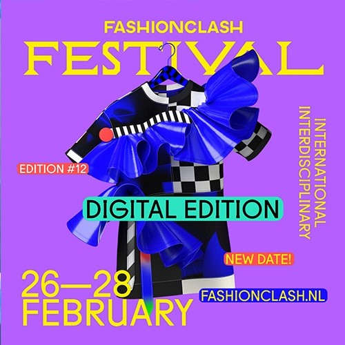 De 12e editie van het internationale FASHIONCLASH Festival vindt plaats van 26 - 28 februari 2021. Tijdens het driedaagse evenement krijgt een nieuwe generatie ontwerpers en (podium)kunstenaars uit binnen- en buitenland de kans om hun werk digitaal te tonen aan het publiek.